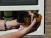 En dit is Katrien, ze is ook overgenomen van een gezin, waarvan een gezinslid allergisch bleek te zijn voor hooi en strooi..